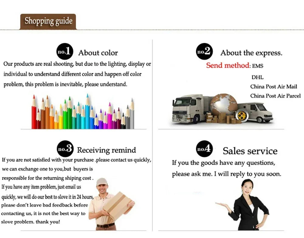 4. Wir bieten auch Expressversand wie DHL, UPS, EMS etc. an, zögern Sie nicht uns zu kontaktieren, wenn Sie es dringend benötigen oder die Menge groß ist.